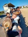 Le vendredi 17 octobre, les enfants de cycle 2 et 3 se sont rassemblés à Josselin pour une course de solidarité au profit de l'association Roc Loisirs. Après le pique-nique, les élèves ont marché jusqu'au stade pour courir. Les CM1-CM2 ont couru encouragés par les GS-CP-CE1-CE2 et ensuite c'était à leur tour d'encourager leurs camarades du RPI.